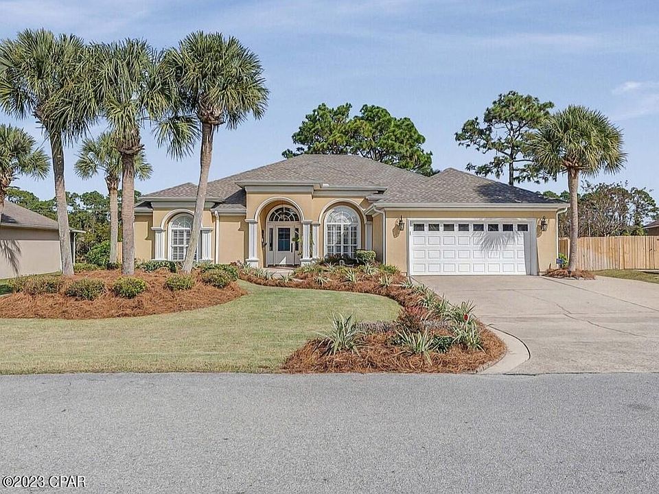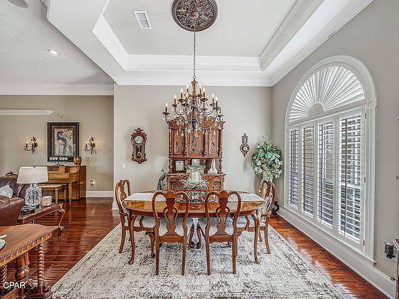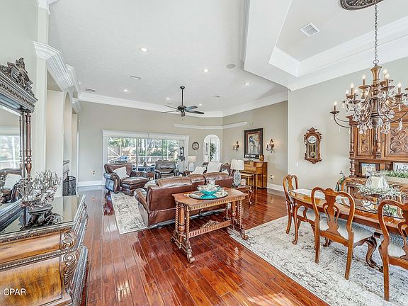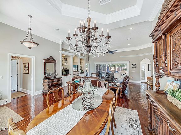 This Exquisite Custom Built 3 bedroom, 3.5 bathroom home has been meticulously maintained by its original owner and needs absolutely nothing! Excellent layout and floor plan with each bedroom having its own bathroom! This home features a formal dining room, large living room, oversized kitchen, and split bedroom design. You will find engineered hardwood floors, plantation shutters, high ceilings and expansive crown moulding throughout. The backyard screened lanai with pool includes a covered seating area accessible from the living room, kitchen, master bedroom and powder room. The privacy fenced back yard is perfect for families and pets. This home is located in an excellent location and the garage even has a side entry golf cart door for easy access to the newly anticipated Duplin Winery.