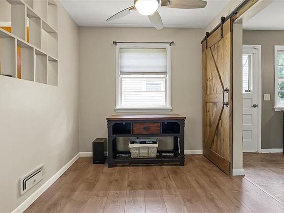 Welcome to this move in ready 3 bed and 1 bath Ranch home. A welcoming and bright living room with an attached dinette area features a rustic barn door for a farmhouse design. Previously renovated kitchen with appliances included and a side door off the kitchen leads to a large fully fenced yard would be perfect for entertaining. Freshly modernized bathroom with linen closet for ample storage. New flooring throughout and neutral paint colors. Additional rec room, office or 4th bedroom in the basement. Plenty of storage in the laundry room/ work shop area and door leading to the garage. Newer mechanics: Furnace 2008, Hot Water 9/2020, New 100-amp Electric Breaker Panel 2018, New Tear Off Roof and Vinyl Siding 2014.