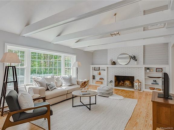 It's all been done This sun filled home, with farmhouse style decor, offers an open floor plan and quality updates through out - perfect for today's lifestyle. The spacious Living Room features a vaulted ceiling, beams and a wood burning fireplace flanked with shiplap, the Dining Room is perfect for casual and formal gatherings. The kitchen boasts cherry butcher block counters, crisp white cabinetry, open shelving, stainless steel appliances, a quartz island with breakfast bar, tile flooring and opens to the deck to enjoy alfresco dining. The Master Bedroom is generously sized with a remodeled ensuite bathroom. The additional three bedrooms, all with wood floors share a beautifully updated full bath with great storage. The Recreation Room on the lower level, with tile plank flooring and a wood burning fireplace is light and bright with full daylight windows. The large level yard, with garden beds is lightly treed has plenty of room for outdoor recreation. Conveniently located close to everything - Simsbury town center, schools, shopping, dining, rails to trails and Bradley airport. You'll be proud to call 124 Hoskins Road home