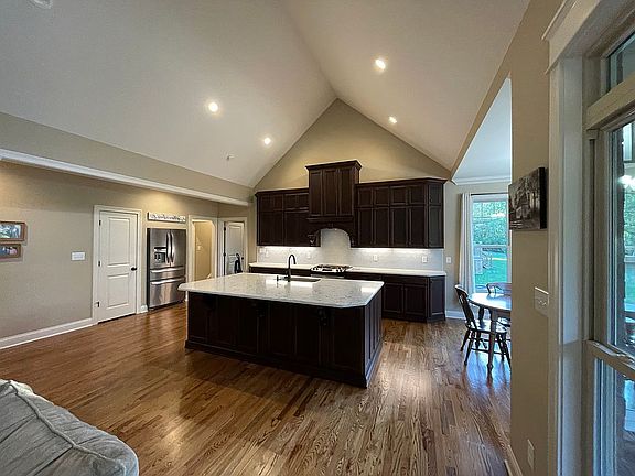 If you’re looking for a well-designed custom home that doesn’t feel like the same cookie cutter design, you’ve found your home. Located in the sought-after Fox Chase neighborhood, this beauty has the perfect size lot with a great tree line in the rear of the property for peaceful views and privacy without giving up the proximity to town, 31W, or the interstate. The home features a covered front porch ready for your patio furniture or swing. Enter the front door to a foyer that opens to the large open concept living area, kitchen, and dining area. The kitchen has a large island, extensive cabinet space, newer appliances (including a built in microwave), quartz countertops, and a glass tile backsplash. Adjacent to the kitchen is the dining area filled with windows overlooking the beautiful back yard. The living area features a remote controlled gas fireplace between the custom bookcases on either side. Above the fireplace and mantle is a large Samsung TV and Sonos surround sound speaker, which is intended to be included with the home. The living area also has plenty of windows and a french door that opens to the deck. This 3 bedroom home features 2 suites. The primary suite has french doors to the deck to allow for a cool breeze and ample sunlight. The primary bathroom has a huge custom porcelain tile shower with dual shower heads, handheld sprayer, and a ceiling rain shower head. The bathroom also includes two sinks, heated floors, quartz countertops, a separate toilet room, and a large walk-in closet attached. The second suite on the opposite side of the house has a beautiful picture window with a view of the backyard. This bathroom includes a soaking tub, spacious shower with tile seat, dual sinks, heated tile floors, and separate toilet area. The third bedroom is near the front door and with a full bath across the hall; the third bathroom has cast iron tub, porcelain tile shower walls, and heated tile floors. The home also features a two car garage and on demand gas water heater. A mudroom and laundry room are just inside the garage door entrance to the home. The laundry area also features a cabinet used for internet router and ethernet networking throughout the home. Go up the stairs from the mudroom to the unfinished bonus room for those that might want even more space. The home has beautiful hardwood floors throughout with porcelain tile in the mudroom, laundry, and bathrooms.