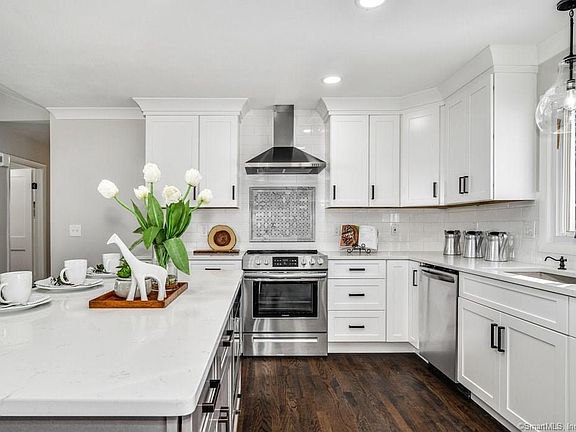 This home offers new central air, roof, front door, front steps, walkway and professional landscape. Enjoy all new kitchen/bathroom cabinets, counter tops, stainless appliances, interior 2 panel doors w/hardware, USB plugs, new garage door, light fixtures, interior paint and refinished floors. The open floor plan with the center island kitchen and totally remodeled and renovated bathrooms really make the difference. The quality of materials, craftsmanship and attention to detail is what sets this house apart from all others. This home is like something out of a magazine. Don't miss the opportunity to own this maintenance free home in this desirable area of Trumbull.