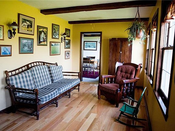 Embrace the tranquility you have been searching for. Sweeping views highlight this private 13-acre hilltop Portersville century home surrounded by stunning landscape. Not just a welcoming entrance, the front sitting room offers a vantage point to enjoy the serene location. Spacious living areas feature a stone fireplace, lovely hardwoods, and den with adjoining full bath. In the kitchen, water gently cascades down the original stone well, while the vintage gas stove is complemented by hand-crafted wormy chestnut cabinetry. Adjacent dining offers tranquil views of sunny perennial gardens and small orchard beyond. A brick wall adds character to the master. Double closets offer ample storage in each of three additional bedrooms. Water and electric at key points across the property permit a myriad of uses. Bask in the peaceful solitude this property affords and create the lifestyle you have dreamed of. The journey home begins at 124 Hy-Spy Drive.