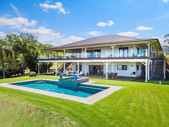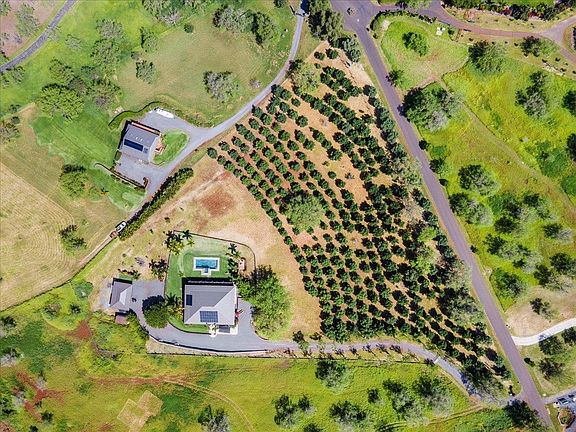 Contemporary recently remodeled estate in exclusive Oma'opio Ridge. Picturesquely positioned in Kula on the lower slopes of Haleakala with idyllic location and elevation. This exceptionally manicured 5.01 apx acre property is offered completely remodeled and turnkey, boasting privacy, security, eco-friendly upgrades, and unforgettable bi-coastal views! Modern two story home and detached 3 car garage that features open flexible floor plan and 5,820 apx sqft of indoor/outdoor Hawaiian style living, plus a serene pool and spa! Property has been extensively remodeled throughout! Gourmet chefs kitchen featuring gorgeous new Carrera waterfall island, new iron cast pendant light fixture, new dishwasher, built in Bosch appliances, and Acacia hardwood floating shelves. The Ocean view Primary suite has modern custom sliding closet, new oversized chrome rainfall shower heads and hardware, new 84" custom glass door, new vanity, porcelain vessel sinks and chrome faucets, smart illumination mirror and Toto smart toilet. Luxurious new Acacia Hardwood flooring and porcelain tile throughout the spacious downstairs. Fully fenced estate is also upgraded with a new solar panel and keypad entry gate, established olive orchard, and a newly planted fruit tree variety orchard with garden beds. Benefit from the Eco-friendly elements including energy star appliances, upgraded AC, 42 panel PV system with 2.0 Tesla Power Wall, Covered Tesla Charging Carport and 2 additional Tesla Charging Stations in Garage. New security cameras and built in security systems. Water filtration system. Entire structure is freshly pressure washed and painted with low VOC paint inside and out. Unmatched elegance, cooler temperatures, and year round sunshine. Adjacent to all of Kula's array of shopping, dining, wineries, galleries, equestrian facilities, farmers market and natural beauty. This is the upcountry Maui home you have been looking for!
