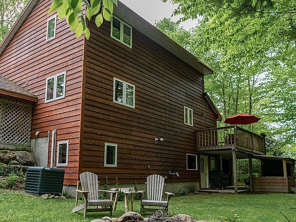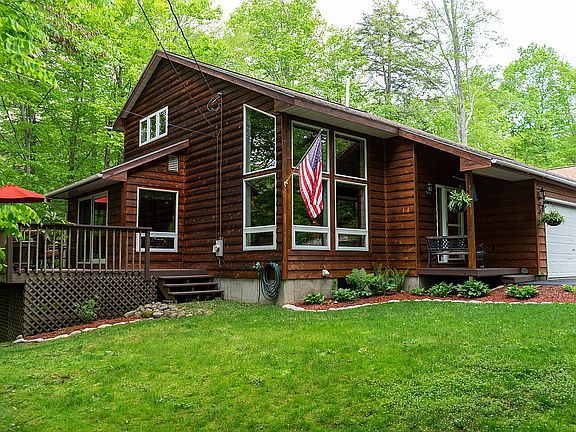 Beautiful 3 story Adirondack home with lake rights and direct snowmobile trail access. 1 1/2 stall attached garage and a 22'x32' heated detached garage. Cozy up in the fully finished basement with a second living area, pellet stove, a handcrafted bar, walkout access to the backyard, full bathroom and 4th bedroom. Enjoy summer evenings around the fire pit with a lean-to accompanied by the soothing rush of the creek, or relax on the deck connected to the kitchen via a sliding glass door. A true Adirondack dream home and a perfect place to raise a family.