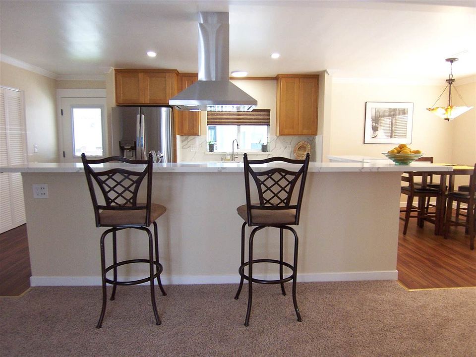 ** This home is in a senior park. To live here one buyer must be at least age 55, other residents must be over age 18. ** Oh, my... Every Encore Home by ARM Homes is better than the last and this their latest one is spectacular! Step inside this Encore Home appointed with classic Craftsman details and you'll feel like you're in a world all your own. The attention to details, the watch words of the ARM Homes team, is unmatched. Eight months in the making, this Encore Home encompasses high tech features like built in USB ports & NEST smoke alarm with built-in night light that even sends notifications to your cell phone. The open island kitchen features wood cabinets with easy-closing drawers and cabinets and luxurious white veined engineered stone counter tops and high-end stainless steel appliances including a stainless steel lined dishwasher, fiver burner gas range with griddle burner, suspended stainless steel exhaust hood, and a stainless steel French door refrigerator.