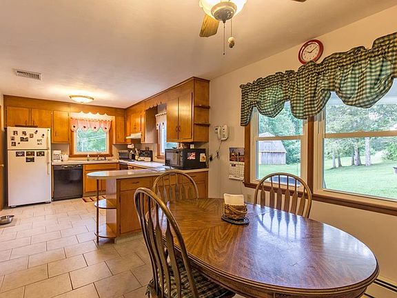 Move-in ready 4 bed, 2.1 bath Ranch! The 1352 sq ft first floor features hardwood floors, fireplace, all 4 bedrooms and 1.1 baths, living room, kitchen and dining. The walk-out lower level features 676 sq ft of finish space with large bay window and wood stove fireplace. Outside is a private lot with large barn with water, electricity and cable! 2 car garage has its own separate heating system and air compressor to work on your cars/hobbies! A clean, well maintained home ready for a new owner!