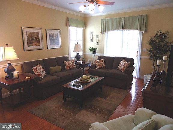 Meticulously maintained Hickory Model, located on a desirable corner location in the fantastic Locust Hill active adult community. Upon entering this extraordinary home, you will know this is it! Gleaming hardwood floors greet you upon entry then flow through the formal dining room, living room and kitchen which also feature chair and crown moldings. Beautiful neutral, warm colors welcome you in to the kitchen with its breakfast bar, ceiling fan, 42" maple cabinetry, built in microwave, pantry and subway tiled backsplash. Lovely living room/dining room combination divided by an elegant gas fireplace. Spacious yet comfortable master bedroom with tray ceiling, ceiling fan, newer carpeting, walk-in closet and its own full bath featuring a large, upgraded tiled shower. Second bedroom also features newer carpeting and ceiling fan. Another convenient full bath off the foyer. Custom wooden shudder blinds throughout. That's not all! This home also brings the outside in with its screened in sunroom with indoor/outdoor carpeting and ceiling fan. Off the sunroom is a paver patio with pretty awning and plenty of room for tables and chairs and barbecuing! Conveniently located near I-195, I-295, the NJ Turnpike, Routes 130, 206 and minutes from Hamilton train station, shopping, fine dining, parks, and much more.