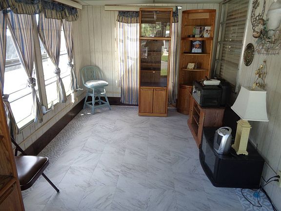 Step inside this spacious and inviting 2-bedroom, 2-bathroom mobile home offering 1,056 sq. ft. of living space plus a bright and comfortable 10x16 family room. The open layout makes it easy to relax and entertain, with a large 12x23 living room featuring a leather electric recliner sofa, coffee table, and a 48" RCA TV-perfect for cozy evenings at home. Sliding glass doors open from the living room into the 10x16 Florida room, bringing in natural light and extending your living space.**---** The 10x12 dining room is open to both the living room and the kitchen, creating a natural flow for everyday living or entertaining guests. The 10x12 kitchen is well arranged with a stove, refrigerator, and microwave, keeping everything you need within handy reach.**---** The private master suite (11x13) accommodates a king 4-poster bed, two nightstands, dressers, a dressing table, and a 24" Samsung TV. The 8x9 master bath offers convenience with a vanity area set apart from the step-in shower and toilet. The guest bedroom (12x13) is carpeted and includes a built-in chest, while the nearby 8x11 hall bath features a tub/shower combo.**---** Laminate flooring runs throughout the home, with the exception of the guest bedroom. Outside, enjoy peace of mind with a durable metal overlay roof, a long 12x60 driveway, and a 12x32 carport. Storage is plentiful with two 10x14 sheds-one at the end of the carport housing the washer and dryer, and another in the backyard for additional space.**---** This home combines comfort, function, and charm, with plenty of room to settle in and make it your own.**---** The home is located in Twin Palms Mobile Home Park, one of Lakeland's pet friendly and active 55+ mobile home communities. The lot rent includes cost saving benefits to include Spectrum TV cable and internet, water, sewage, trash and pass through tax. Also included are resort style amenities: Heated pool, pickleball, shuffleboard courts, Tiki huts, fire pit, gas grill, dog park, exercise room, clubhouse, billiards, library. All of this for only $1228.00/mo. So, what are you waiting for? Start packing and come enjoy the Florida lifestyle!**---** The community is conveniently located on the west side of Lakeland only 2.4 miles from I-4. Lakeland is centrally located in Florida, approximately 45 minutes from the west coast beaches, Disney, Legoland, and approximately 90 minutes from the east coast beaches and Cape Canaveral.**---** All listing information is deemed reliable but not guaranteed and should be independently verified through personal inspection by appropriate professionals. American Mobile Home Sales of Tampa Bay Inc. cannot guarantee or warrant the accuracy of this information, measurements or condition of this property. Measurements are approximate. The buyer assumes full responsibility for obtaining all current rates of lot rent, fees, or pass-on costs associated with the community, park, or home from the community/park manager. American Mobile Home Sales of Tampa Bay Inc. is not responsible for quoting of said fees.