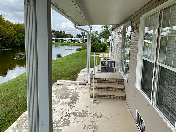 This home is located on Palm Lake with a beautiful view of a bird sanctuary on the other side of the lake. This home is 2256 sq ft with two bedrooms, two baths, and a den. The home has a 1-1/2 car garage and a double carport. The living room is large with a dining room and family room going off it. The master bedroom is located off the living room with an exceptionally large walk-in closet and a huge master bath. You can go to the lanai from the master bedroom through the patio doors located in the master bedroom. From the living room, you go into the den, and it has three windows that open to the lake and a patio door to the lanai. The dining room is large with a built-in oak cabinet for all your china. The kitchen has an eat-in area that you can also exit onto an outside patio and see the lake through the patio doors. The kitchen has three windows that overlook the lake, lots of oak cabinets, an island in middle, all newer stainless-steel appliances. The den is located off the dining room and is large enough to use as a third bedroom for the family. The guest bedroom is large with a large closet. The second bath is located right next to the guest bedroom. From the guest bedroom, you can go into the large laundry room that has extra storage, tub sink, washer, and dryer. This is a beautiful home that comes turnkey so all you need is your clothes, and you can move right in and start enjoying the Florida lifestyle. The lanai has wonderful views of the lake and wildlife that you can see through the sliding acrylic windows. All the rooms have crown molding. The living room, family room, bedrooms, den, and eat-in kitchen all have Berber carpet, the kitchen has laminated flooring and tile in both bathrooms. The Gardens offer an Olympic size pool, hot tub, outdoor kitchen, fire pit on the outside, and on the inside is an exercise room, three pool tables billiard room, library, card room, ballroom, industry size kitchen, and craft room. Some of the activities at The Gardens are shuffleboard, horseshoes, darts, bowling league, golf league, ceramic, painting classes, all types of card games, beach chair volleyball, a live band dance once a month, and many more activities. All listing information is deemed reliable but not guaranteed and should be independently verified through personal inspection by appropriate professionals. Integrity Mobile Home Sales cannot guarantee or warrant the accuracy of this information, measurements, or condition of any property. Measurements are approximate. Lot rent is subject to change.
