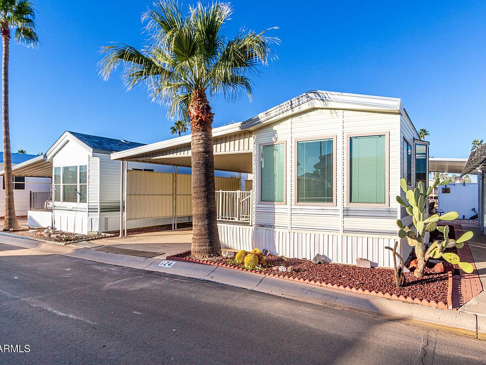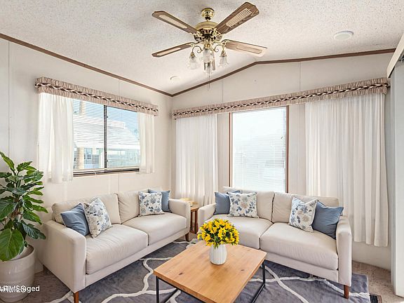 Golden Vista isn't just a neighborhood, it's a LIFESTYLE. Residents enjoy a heated pool & spa, wood shop, billiards, library, putting green, batting cages, & a full calendar of events. Welcome home to your little slice of happiness in this 55+ community where you OWN THE LAND. This charming unit is perfectly located in the community-close to the clubhouse and all the fun, and still far enough away to enjoy your own peaceful spot. You'll love the storage shed with full-size washer dryer, and plenty of room for hobbies, tools, etc. This unit is light & bright, perfect for easy living. Plus enjoy peace of mind with a newer roof & newer water heater. Come see why everyone loves Golden Vista- once you're here, you won't want to leave.