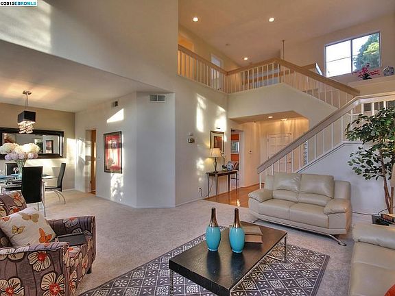 Sparkling Mediterranean home. Great floor plan with dramatic high ceiling. Large master w/ luxurious bath. Updated kitchen w/ breakfast bar, opens to family room. Lots of windows. Cozy yard w/ new lawn. Close to BART, BUS STOPS, playground, community pool/lagoon path/SF Ferry & school.