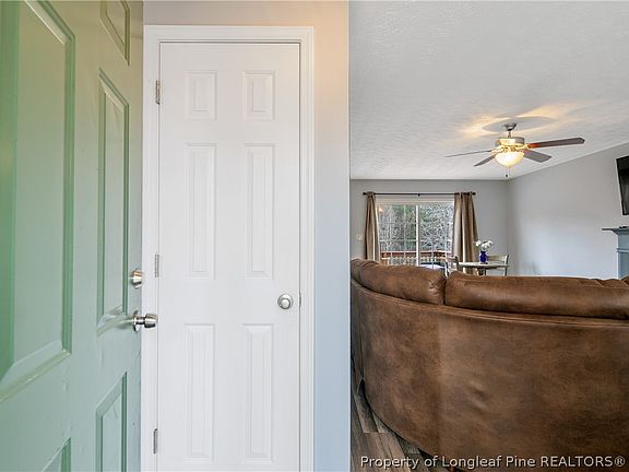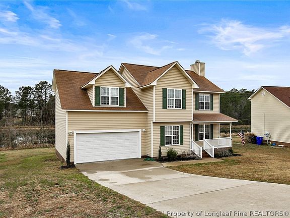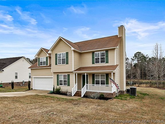 Waterfront home within minutes of Fort Bragg! Three bedrooms, PLUS an oversized bonus room with office nook. Maintenance free laminate on first floor. Open living room with fireplace, breakfast nook and formal dining room. Kitchen includes granite counter tops, stainless steel appliances, backsplash and a gorgeous view of the lake from the kitchen sink. Half bath downstairs. All bedrooms and laundry located upstairs. Owners suite includes walk-in closet and garden tub. Large deck overlooking the lake, great for grilling and entertaining. Community features a park with dock for fishing and kayak launching.