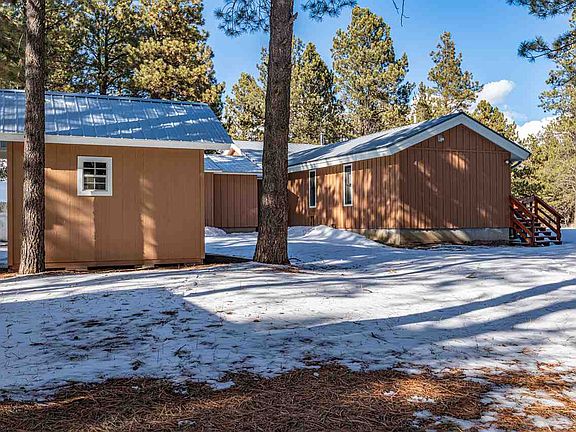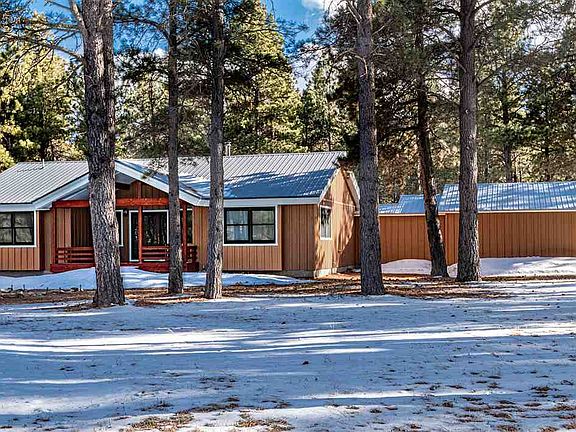 This immaculately kept 3 bedroom 2.5 bath home sits on 2.56 acres of beautifully thinned mature Pines. Tucked away but easily accessible to Angel Fire amenities within 10 min. Entire house and outbuildings have been recently painted, drive re-graveled and interior house updated with new flooring, new interior paint, new fixtures, master bath upgrades, and much more. Two car garage attached to house with a one car garage detached plus tool shed and covered wood storage. Beautiful setting with useable acreage. House is all single level for easy access. Views from the front windows of Kitchen, living room and guest room. Forested view all the way around the house. Neighbors are near but spread out. Lovely place to get away from it all but still have the conveniences of Angel Fire within minutes. Can't think of a more relaxing place to be!