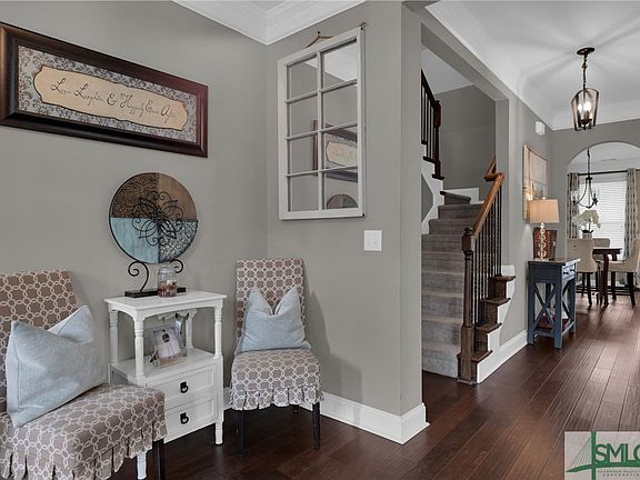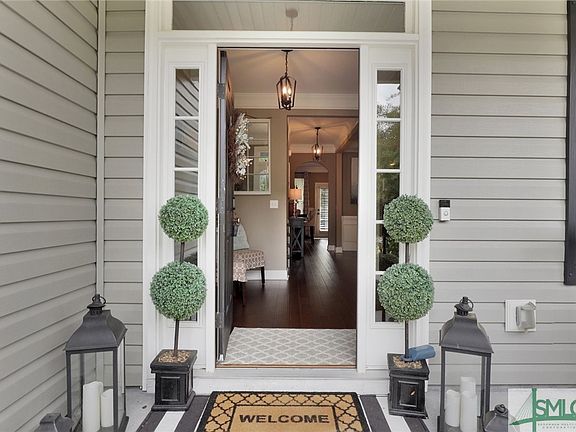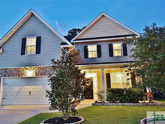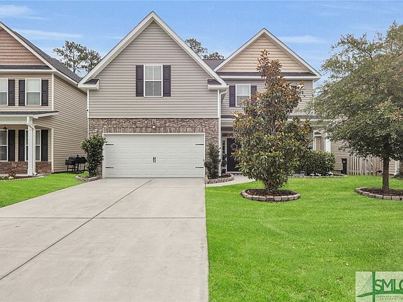 This show-stopping 5 bed, 3 full bath home is well maintained with decorative features throughout. Relax on the covered rocking chair front porch or back porch with a privacy-fenced back yard. Hardwood floors flow throughout the foyer, dining, breakfast & kitchen areas. The main living areas have 7 1/4" crown molding. Decorative wainscoting trims the formal living & dining rooms. The dining room showcases a coffered ceiling. The spacious family room features bay windows & a built-in tiled electric fireplace. The owner’s suite features two separate closets with custom shelving. The ensuite bath features a separate shower & soaker tub, dual vanities, & a linen closet. Guest suite with full bath located on the main level. All 2nd level guest bedrooms feature walk-in closets. Decorative stacked stone accents on the garage. Fully irrigated yard. One of the most convenient locations near Berwick Shopping center. 10 minutes to Pooler or downtown Savannah! Seller is a licensed realtor.