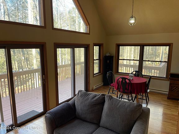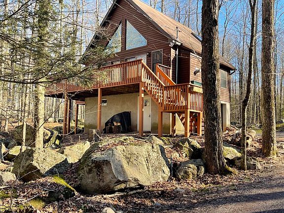 SUBSTANTIAL PRICE REDUCTION!! An outdoorsman's Alpine escape. Enjoy sanctuary living in this exclusive Pocono retreat 2 doors away from the lake. Over 350 acres of protected forest reserved for members only. Water sports at Cobb lake with a sunny beach and marina. Practice your dead eye at the gun range. Community water and trash is included with the annual dues at only $1280. A Charming cedar sided Chalet with vaulted ceilings and efficient stone propane fireplace is turn-key, simply outfit per your personal taste. For even more heating savings a hook up is available for a wood burring fireplace in the partially finished full basement and garage. Every lot at Cobb's Lake has a protected green buffer for privacy. This one won't last long. Call today!! BONUS; buyer receives a 1 year home warranty with acceptable terms