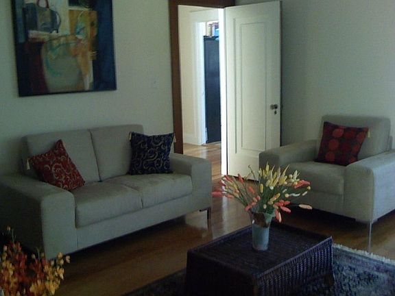 Welcome Home This comfortable and spacious 2 - 3 bedroom, 2 full bath unit has the feel of a single-family home with large rooms and open floor plan, hardwood floors throughout, fireplace in living room, formal dining room with french doors, updated eat-in kitchen w/ stainless steel appliances, maple cabinets and granite counters. Bonus room can be used as an office or guest room. Master bedroom with en-suite bath. Many windows for lots of natural light. In-unit laundry. Located in a quiet residential neighborhood yet walkable to all that Newton Center has to offer including numerous restaurants, shopping. Walkable to Green line D train. Near Chestnut Hill shopping, Whole Foods, Wegmans, Crystal Lake, Boston College. Easy access to Rte 9, 95 and Pike. Extra storage in basement. Gas heat. One car garage parking plus additional offstreet parking space. Available Sept 1