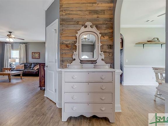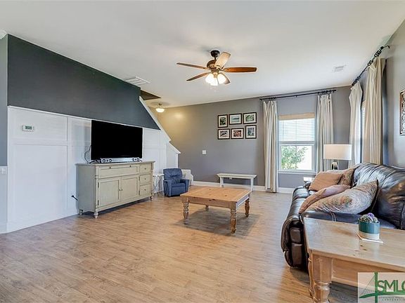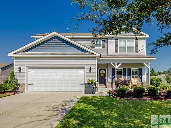 This home is located in the South Effingham area of Guyton. Featuring 4 bedrooms, 2 1/2 bathrooms plus office/bonus area. Foyer entry, all LVP flooring throughout main living area on first floor. Beautiful custom woodwork is found through entire home. Kitchen is equipped with black stainless appliances, eat in breakfast area, and formal dining room. Half bath located downstairs. Upstairs you will find 4 bedrooms including the huge master suite with vaulted ceilings, attached walk in closet and master bath with garden tub, separate shower. Laundry is also located on 2nd floor.