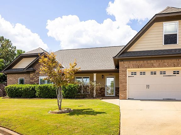 Welcome to 124 Rock Court, a beautiful home in a desirable neighborhood just off Summerville Rd! This move-in-ready property has been professionally cleaned & freshly painted throughout, giving it a bright & welcoming feel. Inside, you'll find wood & tile flooring for style & durability. The spacious living room features vaulted ceilings & recessed lighting. The kitchen boasts granite countertops, a stylish tile backsplash, & ample storage. The master bedroom has tray ceilings & a luxurious ensuite bath with his & her sinks, a soaking tub, & a custom tiled shower. The second bath also offers dual vanity sinks. This versatile split floor plan includes 5 bedrooms, one above the garage that can serve as a bonus room or office. The fenced backyard provides privacy, perfect for entertaining or relaxing in the above-ground pool. A 10x12 storage building on a concrete pad adds outdoor storage. Located in a peaceful cul-de-sac, minutes from Publix, shopping, & Columbus!
