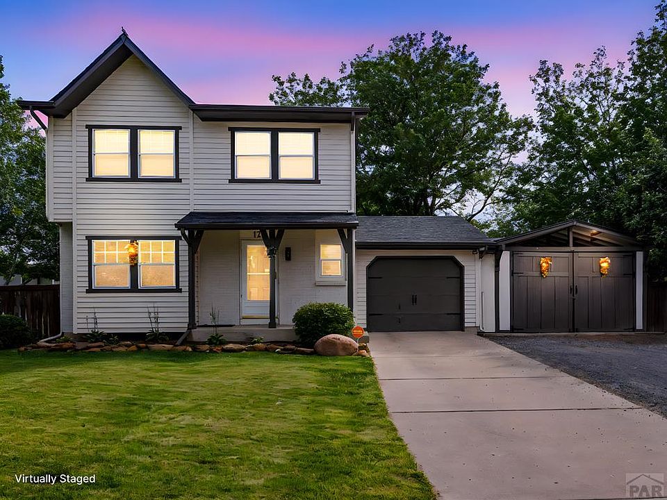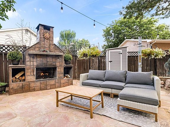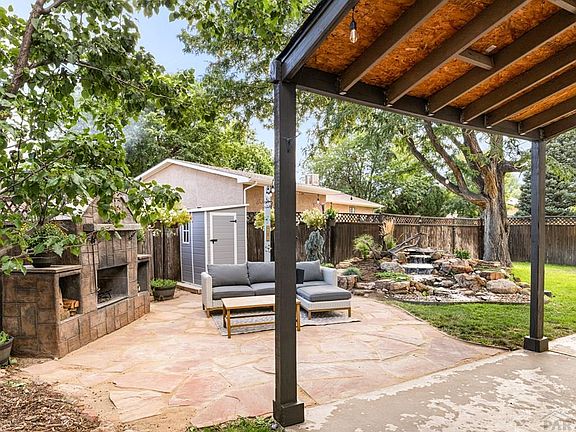 Looking for your new home? Look no further! This completely remodeled two story, 3 Bed, 2 Bath, home in Regency has the beauty and flow you want. The instant you walk in, you are invited into the relaxing living room with a stone finished fireplace and a cozy feel, (surround sound speakers included!) Upstairs you'll find 3 bedrooms with newer carpet, 2 recently remodeled bathrooms and a surprising view of Pikes Peak from the top of the stairs. Back on the main floor, the new LVP flooring ushers you from the living room into the kitchen and dining areas where you will find a re-imagined island with a gas stove, stainless steel overhead hood and bar stool seating. Stainless steel appliances, flowing open space and a stunning view of the back yard through the kitchen windows beckon you to whip up your favorite dish and invite family and friends to share the enjoyment with you. Then step into your private backyard oasis, highlighted by a custom outdoor fireplace and sitting area, shade trees, private pavilion and a remarkable waterfall feature that will provide you with countless hours of tranquil respite. Upgrades include central air, exterior and interior paint, windows, a newer roof and carpeting, and new LVP flooring and water heater in 2025. The home is close to shopping, dining, schools, golf course, City Park and Zoo, Regency Park, mountain biking and hiking trails, and a short drive to the Pueblo reservoir. Don't miss out, make this house your home!