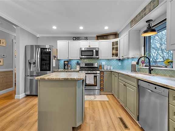 Beautifully updated home with phenomenal curb appeal, governor's driveway and a fantastic backyard featuring an expansive concrete patio, covered deck with ceiling fan and cable access and a 24 ft heated pool with composite deck. The home features the amenities buyers are seeking, granite counter/breakfast bar, stainless appliances, hardwood flooring, modern fixtures, exposed brick and a variety of living spaces for all filled with natural lighting. Main level boasts an easy, open flow floor plan - formal living room, dining room and spacious family room featuring a gas fireplace and French doors leading to the rear deck. 4th bedroom located on lower level has a gorgeous fireplace perfect for private owners suite, teen, in-law suite, or a fantastic game room. Updated bathrooms, separate laundry room with built-in ironing board and washer and dryer stay. 4 car garage! 2 integral and 2 at the detached garage with a bonus loft. Close to shopping, dining & I-376 corridor. MUST SEE