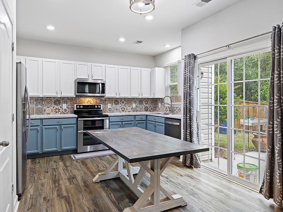 Welcome to your lovingly maintained 3 bedroom, 2.5 bathroom home located in the sought-after Wentworth Hall neighborhood of Summerville. Resting on a wooded lot, you'll be able to enjoy a sense of nature and privacy right in your backyard! As you step inside, you'll be greeted by the formal dining room with tray ceilings and an arched doorway. The entire first floor has been redone with Luxury vinyl plank! The kitchen area features an inspired backsplash, redone countertops (and plenty of counter space), recessed lighting, two-tone cabinets finished in white on the top level and subtle blue tone on the lower level, and new, fingerprint resistant, stainless steel appliances including a double oven and ultra quiet dishwasher!The open floor plan allows the kitchen to flow into the eat-in kitchen area, as well as the family family room, which is cozy and comfortable, with a beautiful fireplace that adds warmth and character to the space. Upstairs, the master bedroom awaits with a tray ceiling, adding a touch of elegance to the room. The master bathroom features dual sinks, a separate shower, and a garden tub, making it the perfect retreat for relaxation after a long day. Through the master bathroom you'll find a spacious walk-in closet. Leaving the master suite and stepping into the hallway you'll find 2 additional, spacious storage closets, 2 additional bedrooms and another full bathroom with dual sinks. In addition to the features offered inside the house, and the *wooded backyard* the Wentworth Hall neighborhood offers a variety of outdoor amenities, including a pool, covered pavilion, and play park. Whether you're looking to entertain family and friends, or simply unwind and enjoy some quiet time, this home is the perfect place to call your own. This home won't be available for long - schedule your showing today!