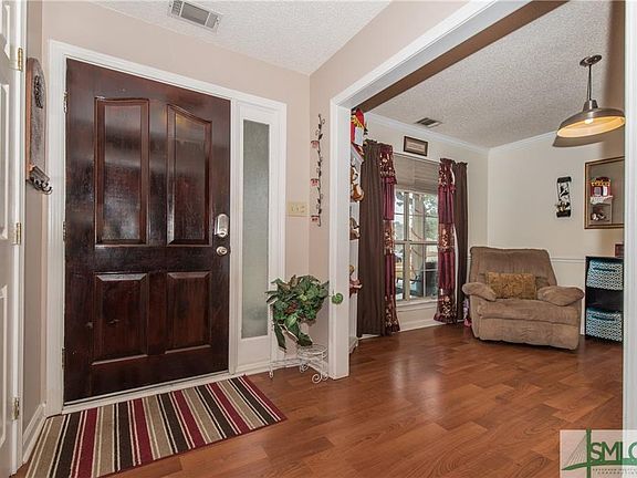 This beautiful and updated 3 bed/2 bath home is move-in ready. The spacious living rooms has laminate wood floors, ceiling fan and beautiful focal point fireplace that can burn either gas or wood. The kitchen features a beautiful granite counter top accented with quality appliances including 5 burner, Samsung gas stove, stainless steel inside and out Samsung dishwasher and stainless steel LG refrigerator. The master offers a trey ceiling, enough space for a king bed and other furnishing and an ensuite. The backyard is fenced and has a storage shed. Flood insurance is not required and it is not in an HOA. Convenient to everything Pooler has to offer, both I95 and I16, Gulfstream and the Ports!
