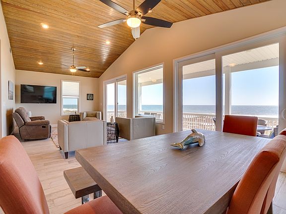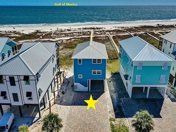 Beautiful, custom Gulf front home affords unobstructed views of the Gulf of Mexico from the main living area and master suite and all decks. Tongue & Groove ceiling in living and dining area. Home is in a quiet, small subdivision with no through traffic, no HOA, or dues. Generous floor plan with a large kitchen that features quartz counter tops, kitchen island, KraftMaid cabinets, stainless steel appliances, and undermount sink. Oversized bedrooms will accommodate multiple bunks. Large custom master suite with sitting area and large, custom walk-in closet. Elevator services all floors. Private 425' boardwalk with ramp to the sand! Paver driveway with extended parking. The expanse of windows throughout the home gives you a front-row seat to the breaking waves and playful dolphins! Your private retreat awaits! Virtual tour attached!
