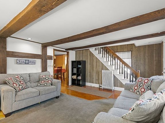Why pay rent when you can own? For under $300K, this conveniently-located Upton home can be all yours! 124 Main St welcomes you in with a rustic feel, thanks to the beamed living room and square-nailed hardwood floors in the dining room. A gun cabinet, believed to be original to the home, adds vintage charm. The galley kitchen boasts a double sink and spacious barn-doored pantry. So much natural light in the bright sunroom overlooking the two-tiered backyard and the neighboring brook for year-round beauty. The first floor is completed with a full bathroom. Upstairs, you’ll find two bedrooms (can be converted back to three), one with two closets. The walk out basement has a half-bath, laundry, and plenty of storage and a workshop area. The back yard offers two decks and two storage sheds, one with plumbing and electricity for outdoor entertaining! Buyer got cold feet. Offers due Monday 12/4/23 at 12:00 PM.
