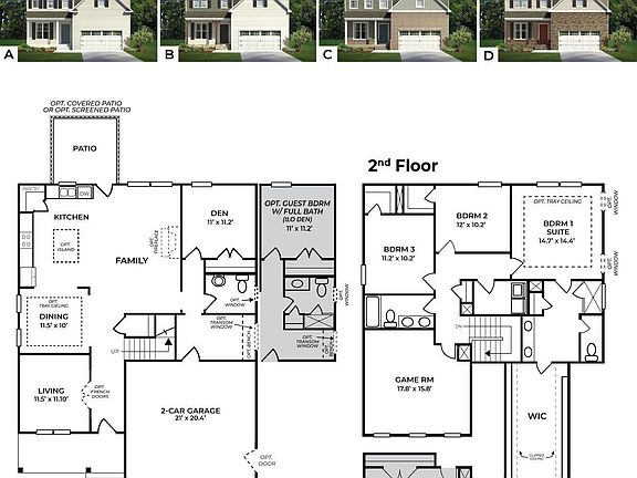 This 4 bedroom plan has been built to include a guest bedroom down, a game room and office! WOW! It is a well thought out floorplan with-9' ceilings on both levels, open kitchen perfect for entertaining, SS appliances and tiled backsplash. Our most popular plan!