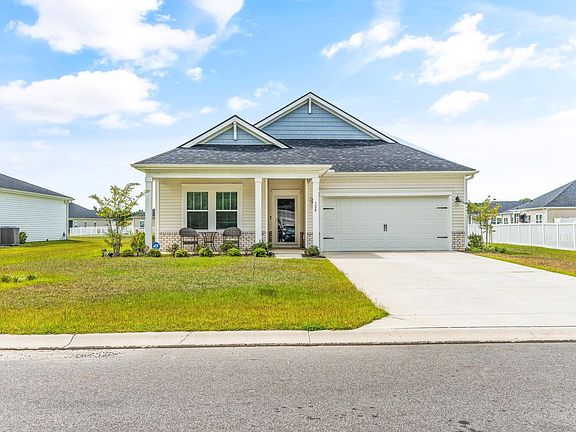 Come see this beautiful 3 bedroom 2 bath ranch style home on the pond with nice sized fenced back yard in the heart of Little River! This home features granite kitchen countertops with tile backsplash, laminate flooring throughout main areas, added on covered back porch with fenced yard and extended concrete patio extension for entertaining and grilling outdoors. Low HOA community with future community pool! Home has open floor plan concept, 2 car garage, laundry room with potential drop zone for additional storage, split floorplan with two bedrooms and bathroom in front and backside primary bedroom. Primary bathroom features double vanity Moen Faucet sinks, granite countertops and tile shower. Centrally located close to the ICW Restaurants, golfing, shopping, Calabash, Ocean Isle orCherry Grove Beaches and more ! Owner added in fenced yard, covered porch, screened porch, and outside extended patio.