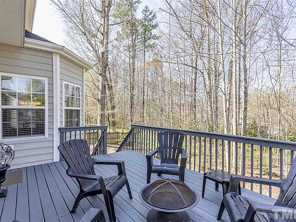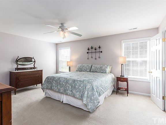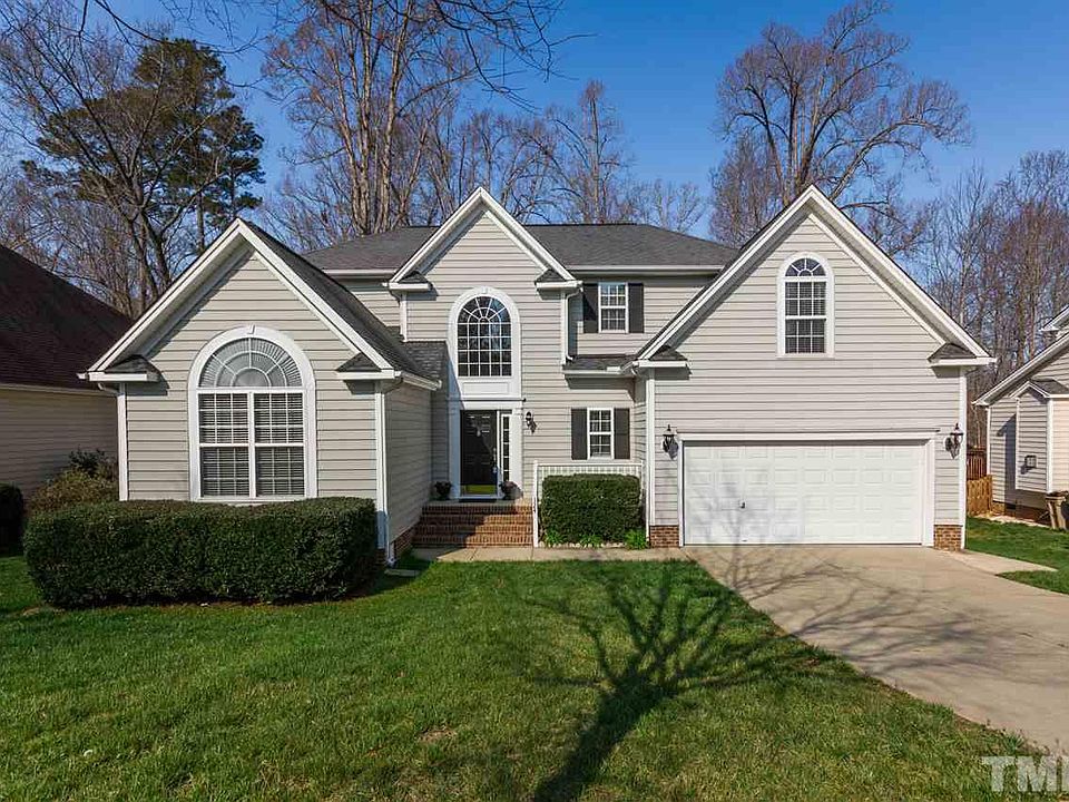Spacious home in lovely swim/tennis/golf Eagle Ridge. 15 mins to downtown Raleigh! 1ST FLOOR GUEST ROOM & FULL BATH! Open family room & kitchen lead to large deck overlooking wooded back yard. Gleaming hardwoods in 2-story foyer & formal LR & DR. 2-pc crown downstairs, foyer, & upper hall. Stainless appliances, whirlpool tub & heat lamp in master bath, surround sound in bonus & FR. Bonus wired for projector. Garage has side door & utility tub. Fridge negotiable. Fresh paint, pet-free, & MOVE-IN READY!