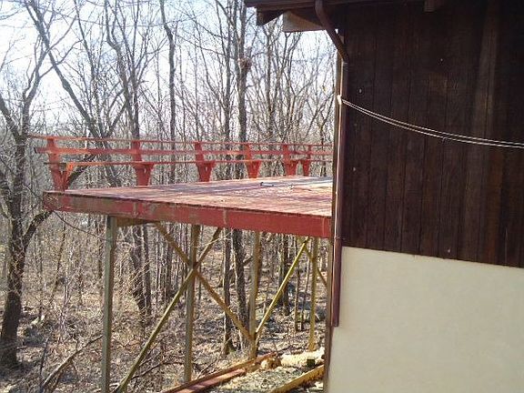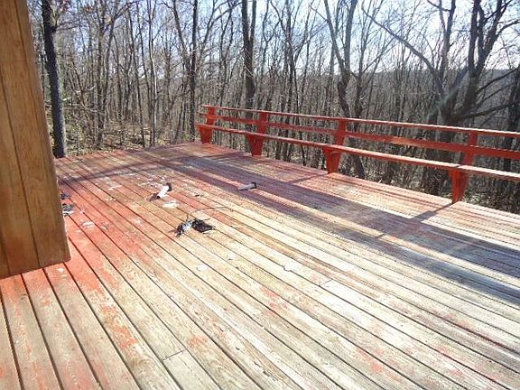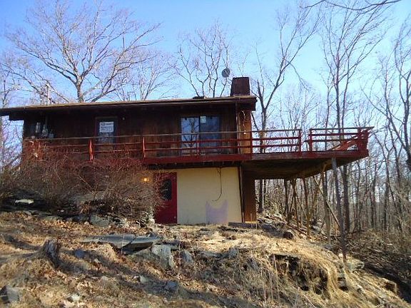 Exterior Features: Wooden siding and asphalt roof. Large back deck that is missing a railing. Overall fair condition. All windows in tact. Large, wooded lot. Interior Features: Open floor plan kitchen, living room and dining room. Kitchen is complete with a gas range, dishwasher, and a refrigerator. Living room/dining room area has an exposed sub floor, large fireplace, and skylights in the ceiling. Ceiling also has exposed beams. Bathroom is complete with vinyl flooring. Overall fair condition. One bedroom on the main floor with drywall and hardwood flooring along with exposed beams and sky-lights. Partially finished basement. Brick fireplace, paneling and a drop ceiling. Floors are unfinished. There are two bedrooms both with vinyl flooring and paneling. There is also a complete bathroom in the basement in fair condition. Hot water tank in basement along with electrical panel. All heating is electric base board.