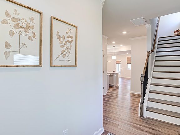 This Premium End Unit Townhome is directly located across from one of few wooded pocket parks in Chatham Park. Spacious lot, incredible kitchen, under cabinet lighting, quartz countertops and upgraded appliances including refrigerator, washer and dryer. Open family room and dining room. Custom window treatments includes lighting fixtures even in the baths and gas fireplace. Second floor includes Hardwood stairs, three bedrooms, flex room with feature wall and molding. Large laundry room with shelving and laundry sink! This home has custom window treatments, ceiling fans and lighting fixtures that include the baths! EV outlet is installed in the garage. Ready to move in!!! Paddles swim and Pickleball just a short walk on the trail around the corner!!