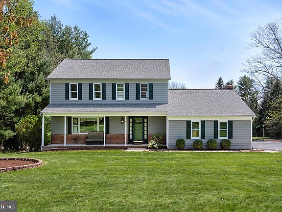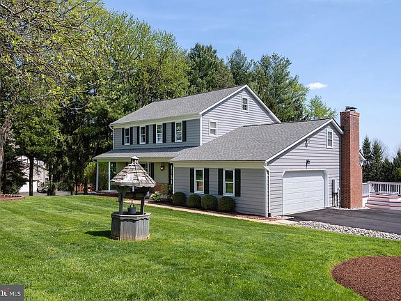 On a sun drenched hill in Hopewell Twsp, where stunning hardwoods dot the 2 acre knoll, stands this peaceful and scenic home, in one of the most picturesque locations in the Hopewell Valley! Step inside and you will be immediately surrounded by warmth. Cozy oak floors line the spacious living and dining rooms. A big and bright kitchen opens into the family room, where a fireplace invites you to relax after a long day. Upstairs, four bedrooms offer plenty of room for loved ones and visiting guests. The primary bedroom has its own up-to-date bathroom and there is another full bath in the hall for added convenience. Downstairs is an expansive finished lower level with room for entertainment or whatever else suits your fancy! Outside on the deck, take a dip in your very own spa as you enjoy tranquil views of the deep, grassy yard - perfect for lawn games or watching the fireflies on those warm summer evenings! For car lovers, there are two garages: one attached two-car garage plus another separate structure with two bays. Both offer plenty of parking options and storage space. Everyone will feel right at home here!