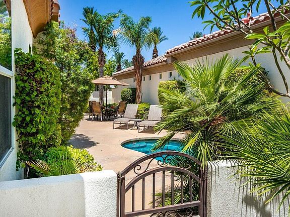 Beautiful freestanding furnished, 3 bedroom home in the Lakefront enclave of only 36 homes on FEE LAND (you own the land). Seldom on the market! Includes the Trifecta membership of Social, Fitness and Sports, allowing unlimited access to the Fitness/Wellness Center and classes, all dining and social, and just steps away from world-class tennis and pickleball (15 hard tennis courts, 10 grass courts, 4 clay courts and 20 pickleball courts). This is the only HOA on fee land on the Mission Hills Campus to include all three memberships. This elegant retreat has a beautiful desert-scape courtyard leading into an entertainer's dream home. The front and back yard are professionally maintained for a maintenance free lifestyle. The living room is open concept with the fireplace as the focal point. The dining room is expansive to host large gatherings, and the kitchen is well appointed and flows beautifully. The large primary bedroom suite has an adjacent room perfect for a home office or extra guest space. This floor plan features dual primary suites both with ensuites. Third bedroom is functioning as an office/flex room.