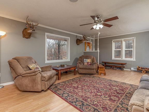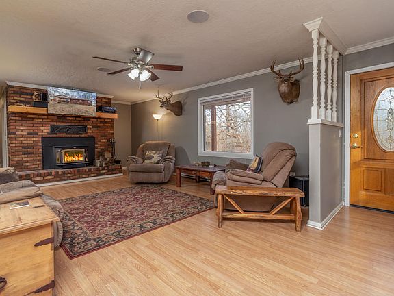 Beautiful sunrises & even better sunsets on this cedar wrap around porch. This is 20 mins from Springfield and just over 3 miles from the Marshfield exit. All on 3.73 acres on a dead-end road with lots of wildlife. The home is 3 bedrooms and 2 baths. The living room has a large wood burning fireplace that the owner currently uses. The kitchen and dining room are off the living room and open to each other and includes a bar for extra seating and counter space. The master suite has two separate closets. You will fall in love with the master bath, it is also rustic with a custom tiled shower. The two guest bedrooms are the same size as each other and are on the opposite side of the hall from the master. In the basement is a two car, extra large garage and the utility room. Currently the basement is being used as a workout room but could be converted into extra bedrooms or a family room as it is heated and cooled now. New central HVAC system installed Aug. 2020. Many more updates!