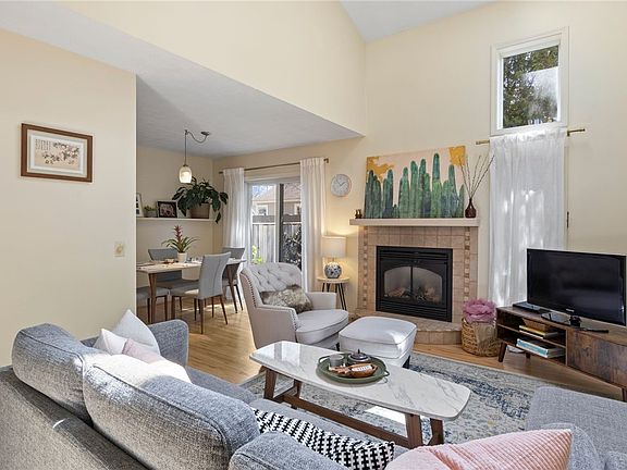 Effortlessly blending style, comfort, and functionality, this thoughtfully updated 2-bedroom, 1.5-bath townhouse is the perfect marriage of form and function. Step inside and be welcomed by an airy open-concept design, where cathedral ceilings soar overhead and large windows pour in natural light, bathing the space in warmth. Anchoring the main living area is a tiled gas fireplace—equal parts cozy and contemporary. The kitchen is a chef’s dream, outfitted with an elegant Italian tile floor, sleek granite countertops, and a full suite of newer appliances including a gas range with electric oven, refrigerator, and dishwasher. Whether you're entertaining guests or enjoying a quiet morning coffee, the newly refinished hardwood floors in the living and dining areas add just the right touch of sophistication. Upstairs, you'll find two generously sized bedrooms, each offering ample closet space and plenty of natural light. The full bath is crisp and clean, while the conveniently located half-bath adds extra ease for both residents and guests. The full bathroom has both a standing shower and a jetted whirlpool tub! Step outside onto your wood deck or relax on the stone patio—an ideal setting for morning coffee, al fresco dining, or simply soaking in the serene backdrop. Additional highlights include a washer and dryer, newer sump pump, and garage door opener for peace of mind and convenience. Located in a beautiful neighborhood just moments away from Strong hospital and other modern conveniences, this townhouse is ready to welcome you home! Showings will begin Friday, April 4th. All offers to be reviewed Tuesday, April 8th at 2 pm.