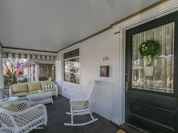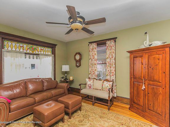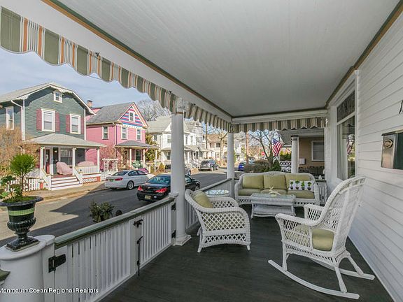A Jewel at the Shore. Three story Colonial with three large bedrooms on second floor.Large suite on third floor. Newer kitchen with granite counters and stainless steel appliances. Formal dining room and custom woodwork in living room with hard wood floors throughout Nearly all new windows , two zoned heat and air. Inviting secret garden and patio with sprinkler system for the entire property plus mahogany porch