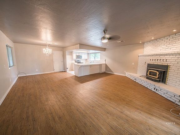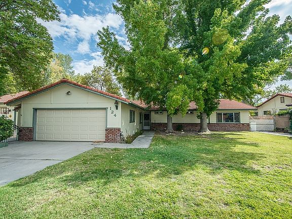 This Three bedroom two bath has been remodeled and is ready to go.Very spacious and open floor plan kitchen has stainless appliances and tile.Living room has a large fire place with a hearth to sit on,Through the french doors to an outdoor kitchen by the creek. There is a extra garage with a huge loft perfect man cave. Tons of storage great neighborhood good views of the Sierra Mountains.