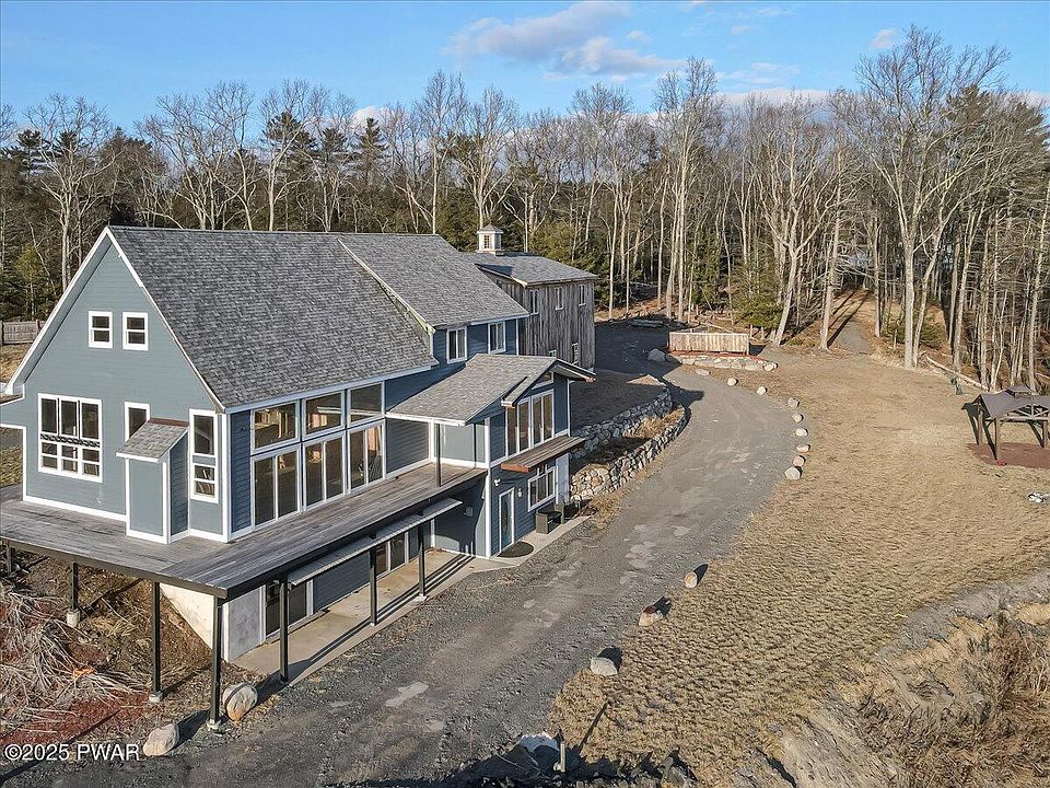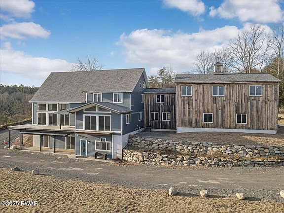 Enjoy SPECTACULAR VIEWS of Milford from this Mountain top home. This two family dwelling and its 15+ acres provide seclusion and privacy while being only minutes from the Historic Borough of Milford. The downstairs residence is fully completed with 3 bedrooms, a full bath and laundry room, kitchen and a living room with fireplace. The upper floors make up the second residence and are ready to be customized and finished by the buyer. When completed the three bedroom, 2.5 bath home will provide approximately 3000 square feet of living area with AMAZING VIEWS of the surrounding area including Grey Towers. The huge, attached, two story garage has an upper level ideal for a workshop or studio. Outside there is a small pond, multiple sheds and areas for gardening. The huge generator makes living on this mountain top self sustaining. It's all less than two hours from Manhattan!