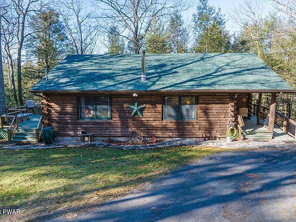 Nestled in the woods on 1.46 acres this custom built log home features living room, dining room and kitchen with wide plank wood floors, remodeled kitchen, open floor plan, 3 bedrooms, 2 bathrooms, laundry room/mud room, full walk out basement, paved driveway, shed and 2 decks to enjoy the peace and quiet of the outdoors. Home backs up to preserve land which allows for extra privacy. Close to Town of Milford and Rt. 84. New roof and handicap accessible.
