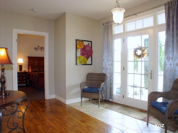Better than new describes this single level 2 bedroom, 2 bath Villa. Split bedroom open floor plan. Gas fireplace, master has walk in tiled shower, wood and tile floors throughout, granite countertops, jetted tub, high ceilings, new a/c, new electric glass range and updated decor and kitchen items. Covered back deck with a woodsy view. No maintenance exterior. Close to clubhouse and pool and within walking distance to the RecPlex. Fully furnished except for a few personal items. Seller is motivated! Bring reasonable offers.