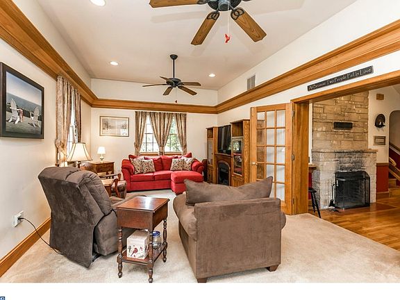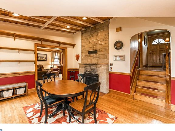 Introducing 124 N. 4th Street, a lovely expanded cape that features a most picturesque setting and all the charm and character missing from today's new homes. If you are looking for a home that is unique and special, this home has it all. As you enter, the Living Room greets you with the warmth of the natural light from the numerous windows, the high ceilings with recessed lights, 2 ceiling fans & French glass doors that add to the spacious feeling of this carpeted room. Off the living room is the Dining Room that centers this home around an impressive stone floor to ceiling wood-burning fireplace w/ceramic hearth, impeccable oak floors, a bay window and painted wood beams on natural wood coffered ceilings. The Kitchen features a pass through to the Dining room, perfect for entertaining. Additional features of the kitchen include natural wood cabinetry, an island, dishwasher, hardwood floors,recessed lights and an Anderson slider to the multi tiered deck. Downstairs from the kitchen is the carpeted Family Room, along with a full Bath, Laundry Area & lots of storage nooks. The upper floors include the bedrooms and a full bath. Each unique in their own way, with either a vaulted ceiling or hardwood floors. Included in the bedrooms is a large main bedroom suite with an en suite full bathroom, a large walk in closet and an additional closet for even more storage. Off of the main bedroom is the loft flex space, a great place for the home office, study area, computer nook or even a cozy place for a good book. The exterior offers a multi tiered deck that allows for plenty of company to enjoy those outdoor cook outs. There's a separate patio below the deck; steps from the large shed and all part of this home's fenced-in yard. The garage, located just a few steps from the living room can be used as a workshop or for every day car storage. Best feature of this garage is the bonus room above it. A space that could be used for storage, a game room, artist studio or music roo