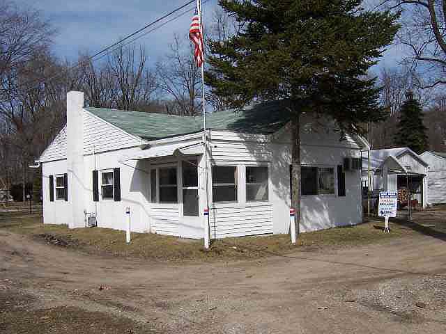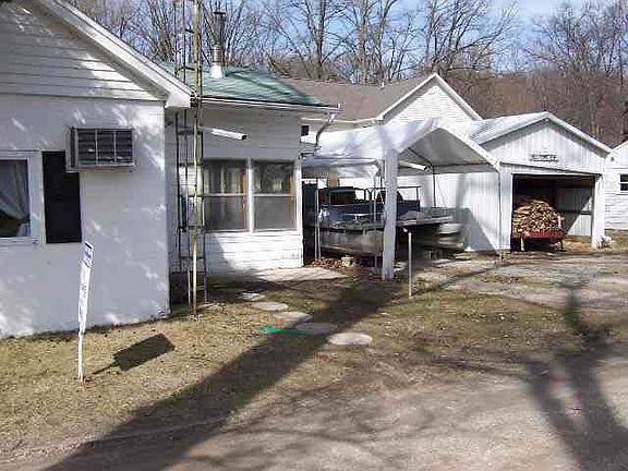 The perfect cottage or year round home with association access via easement directly across road. 2 BR, 1 BA, woodburner in enclosed porch. Detached garage is perfect for boat storage. Shed has sink for cleaning fish. Pier passes with sale. Wildwood Assoc. fee is $35/yr plus $50 dock placement fee.