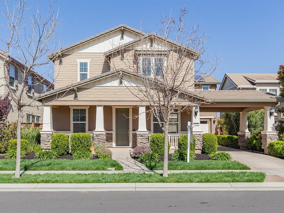 This beautiful detached craftsman style Pulte home features 4 bedrooms and 2.5 bathrooms, surround sound and formal dining (or optional 5th bedroom). The large master suite has an attached bathroom with a separate tub and shower as well as a huge walk-in closet with windows. Upstairs laundry and SOLAR make this house an easy place to call home. You will love the homes freshly painted neutral wall color and the spacious rooms. The backyard is ready for you with built in seating for friends too!