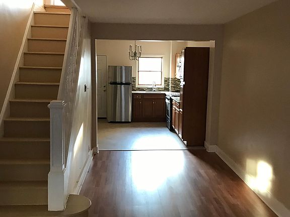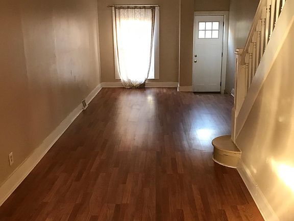 This is a nice 2-3 bedroom 1 bathroom townhouse on a quiet block (one private bedroom in the back, a walk-thru bedroom to get to the private bedroom in the front. It has a brand new kitchen with granite countertops, and new hardwood Pergo flooring throughout the house. It's within walking distance to Patterson Park. There are also washer / dryer hook ups in the unit.