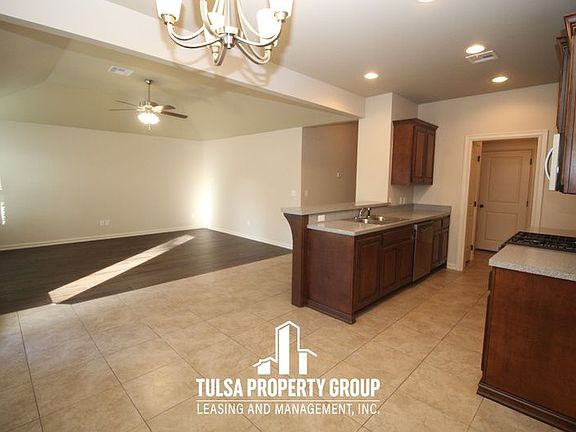 Newer build located in Coweta!This modern open concept home features high ceilings as well as brand new carpet, luxury vinyl wood flooring in living and gorgeous tile throughout. Kitchen has luxury style cabinets and includes microwave, dishwasher, and stove. Master suite is on located on the west end of the home while the other bedrooms are located in their own wing. Two car garage and covered back patio. Large, fully fenced backyard. Within minutes of Coweta Schools.
