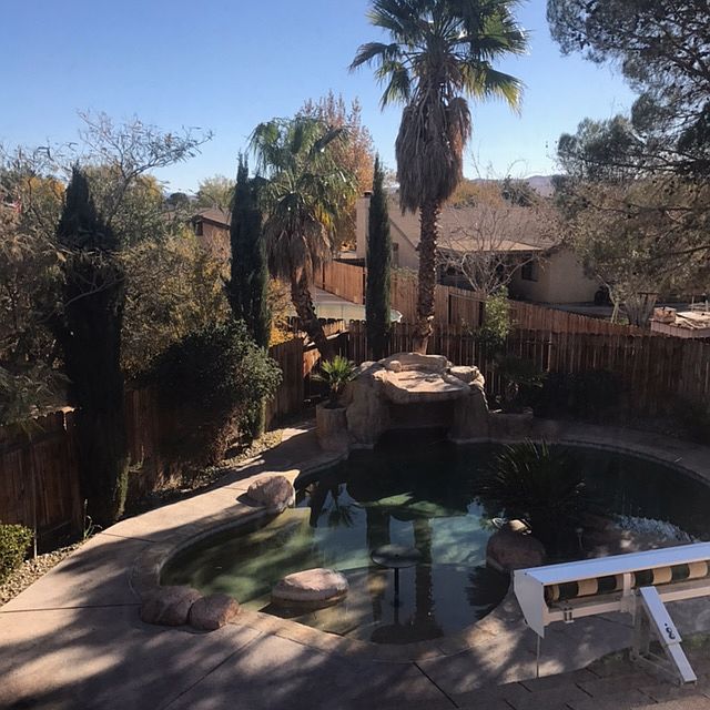 Come take a look and fall in love with this 4 bedroom tropical pool home. Perfect for family relaxation or entertaining. Two story home with master bedroom and luxurious master bathroom on main level. 3 bedrooms with updated bathroom upstairs. Cozy living room with brick fireplace. Beautiful updated kitchen with solid surface counter tops and recess lighting. The back yard is amazing. Tropical pool with waterfall! Grass , palm trees, electronic awning and gazeebo with spa. Its like being at home and on vacation at the same time! Sellers are offering a $2,500 flooring allowance so you can make the final touches your own. Come see this one today!!