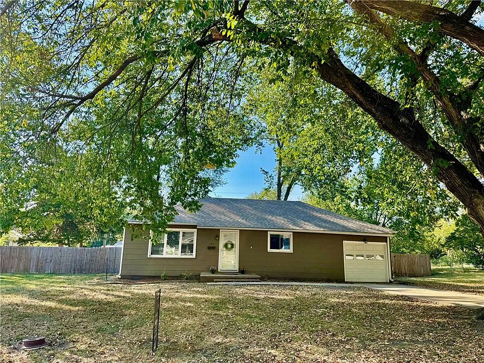 If you missed it the first time, now is your chance! Back on the market, and all inspections done. Get off to a great start! This ranch home is move-in ready. Updated with a more open concept featuring beautiful hardwood floors in the living room, hallways, and bedrooms. Featuring an updated kitchen with granite countertops, subway tile backsplash, stainless steel appliances, including a gas range, under cabinet lighting, a composition sink, a pantry, and plenty of room for the breakfast table and a spacious breakfast bar. Generously sized bedrooms and an updated bathroom with tile and a walk-in shower. Keep your car in the garage this winter, and there's ample storage with the bonus loft area. Nicely sized laundry/mudroom behind the garage with a pedestrian door that opens to the HUGE back yard that is totally fenced with mature trees. Bring the pets. No deposit required! Newer items include: Roof, gutters, HVAC, and windows. This property is located just South of Main St, close to schools, shopping, restaurants, Johnson County Fairgrounds, and quick access to I-35. If you're looking for one-level living or just sick of making your landlord rich, come see this house!