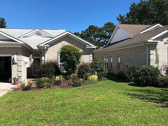 Beautiful Modern Brick Patio home overlooking the 10th hole of the Golf Course in the coveted North Shore Country Club. This beautiful home comes with a deeded membership to the Country Club. Enjoy one level living at its finest! With over 2200 square feet of living space heated and cooled by two systems for energy efficiency. This home has three large bedrooms with the master suite opposite of the two spare bedrooms. The master suite enjoys a large spacious master bath with marble walls and fixtures with his and her dressing areas. The spare bedrooms share a large tub and shower bath. The home is open and spacious! A beautiful Carolina Room provides an amazing view of the well landscaped large back yard, a view of the golf course and a view of some of the homes on North Topsail Island. The kitchen is modern stainless steel appliances ,granite counter tops and breakfast bar.This kitchen has abundant cabinet space and a nice pantry. The ceilings are vaulted with accent lighting for elegance. Main floors are beautiful oak with tile in the kitchen and baths and marble in the Carolina Room. Bedrooms enjoy beautiful lush carpet. The gorgeous landscaping has rain bird splinters and a rock waterfall is lit for accent. Enjoy beautiful patios, a gazebo with Adirondack Chairs, outdoor shower and brick walkways. This home has a large garage with custom shelving and storage. A see- through fireplace can be seen from almost anywhere in the living space, kitchen, dining and breakfast areas. You will love this patio home! Golf Course Club House Tennis Courts and Pool are adjacent to 124.